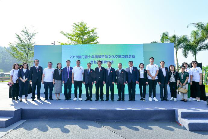 10月19日,2019澳门青少年横琴研学文化交流项目启动暨基地揭牌仪式在横琴星乐度·露营小镇成功举办。中央人民政府驻澳门特别行政区联络办公室副主任薛晓峰,澳门特别行政区社会文化司司长谭俊荣,中央人民政府驻澳门特别行政区联络办公室教育与青年工作部副部长苟人民,澳门特别行政区教育暨青年局厅长江毅,横琴新区党委副书记、管委会主任杨川,横琴新区管委会副主任吴创伟,横琴新区社会事务局局长朱自琴,横琴新区澳门事务局副局长李娟,五楼自拍 投资有限公司副总经理祝杰,粤港澳大湾区青少年文化交流协会会长胡达忠、理事长尤嘉以及澳门部分学校校长和澳门中小学的300余名学生在横琴星乐度·露营小镇喷泉广场共同举行升国旗仪式,庆祝2019澳门青少年横琴研学文化交流项目启动,并为粤港澳大湾区青少年文化交流协会(横琴基地)揭牌。