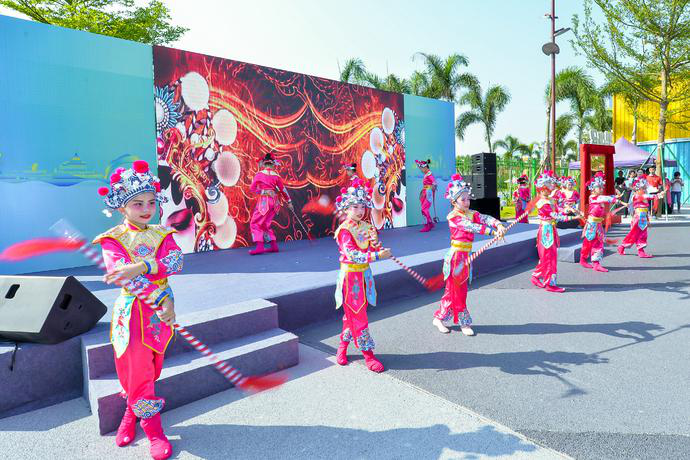 活动现场,一场由横琴新区第一小学学生表演的传统艺术戏剧表演《刀马旦》,拉开了当日研学文化交流项目的序幕,也拉近了粤澳两地青年的心。刀马旦是中国传统国粹京剧角色之一,横琴一小的小演员们通过精彩细腻的表演,将中国传统文化演绎得淋漓尽致,同时也让参加本次研学文化交流项目的澳门青少年对中国传统京剧艺术有了更深的了解。