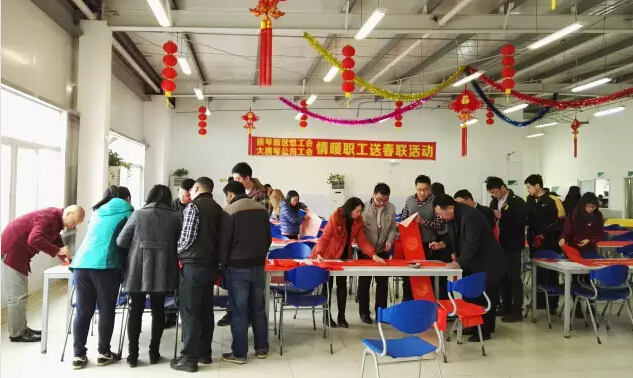 2月3日,为弘扬优秀传统文化,营造和谐喜庆的春节气氛,更好地为职工服务,在横琴新区总工会的支持下,大横琴公司于春节前组织开展“情暖职工送春联”活动。本次活动邀请了珠海市书法协会唐晓泉老师、毛体协会副会长马二增老师为员工现场挥毫,共送出对联160副。