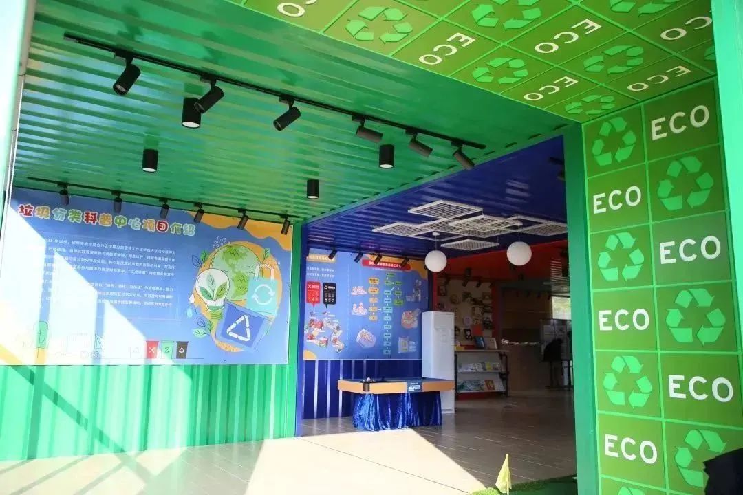 合作区垃圾分类科普中心室内面积达126㎡,以错位Z型布置的集装箱,形成内向围合的宣教场地,整体划分为科普区、活动区和展览区三大功能区,是合作区以“绿色、循环、可持续”为垃圾分类宣导理念,打造的集“活动、教育、展学”三位一体的垃圾分类趣味互动学习空间。