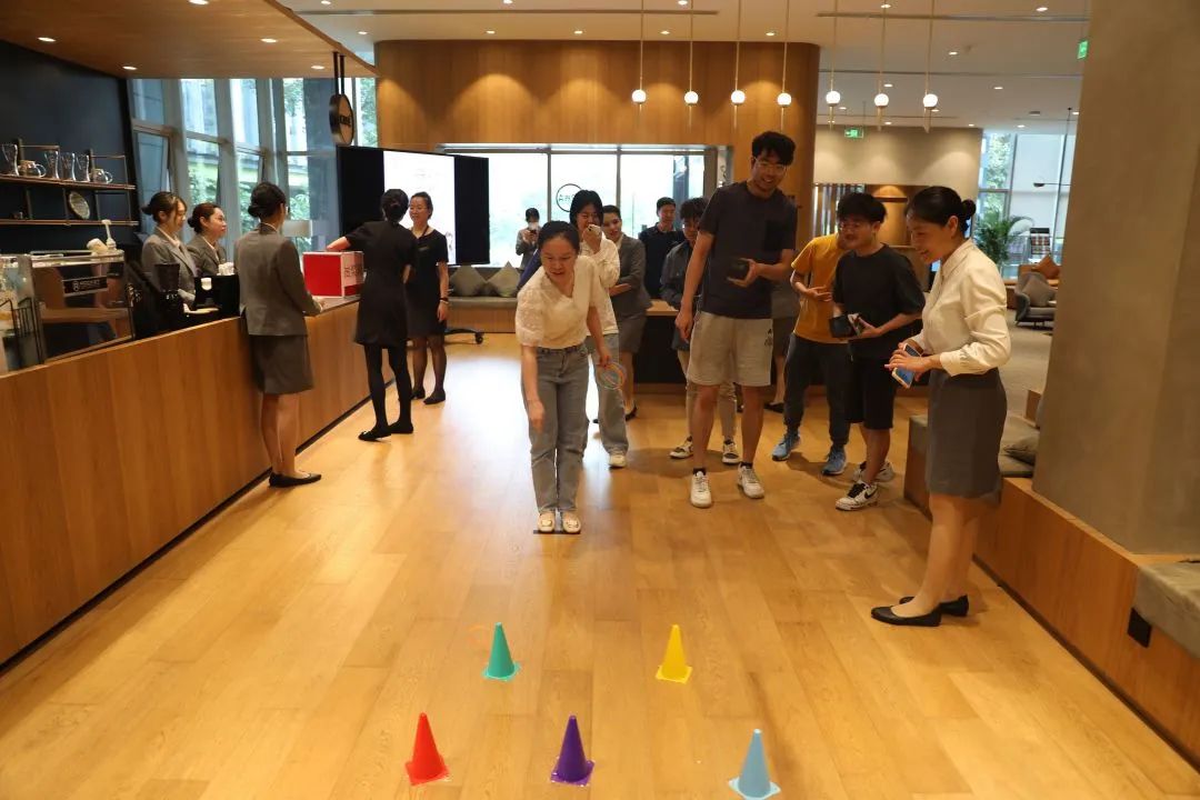 有趣的宠爱互动游戏,陆续吸引了园区100余人员参与,参与者们或手持沙包,或手握套圈,跃跃欲试。