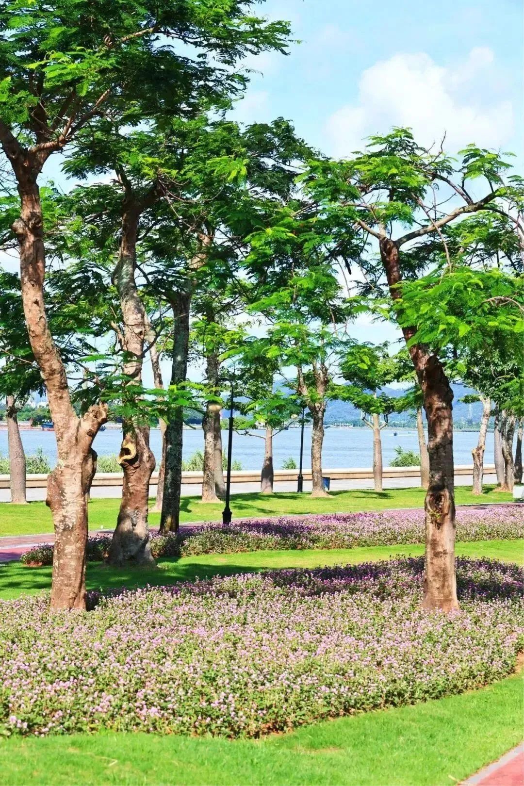 在过去的端午假期,横琴各公园、城市驿站共接待游客逾万人次。其中,花海长廊郁郁葱葱的青草树林与百花齐放的滨海碧道,都是琴建公司养护人员辛勤的汗水所浇灌出的美丽成果。