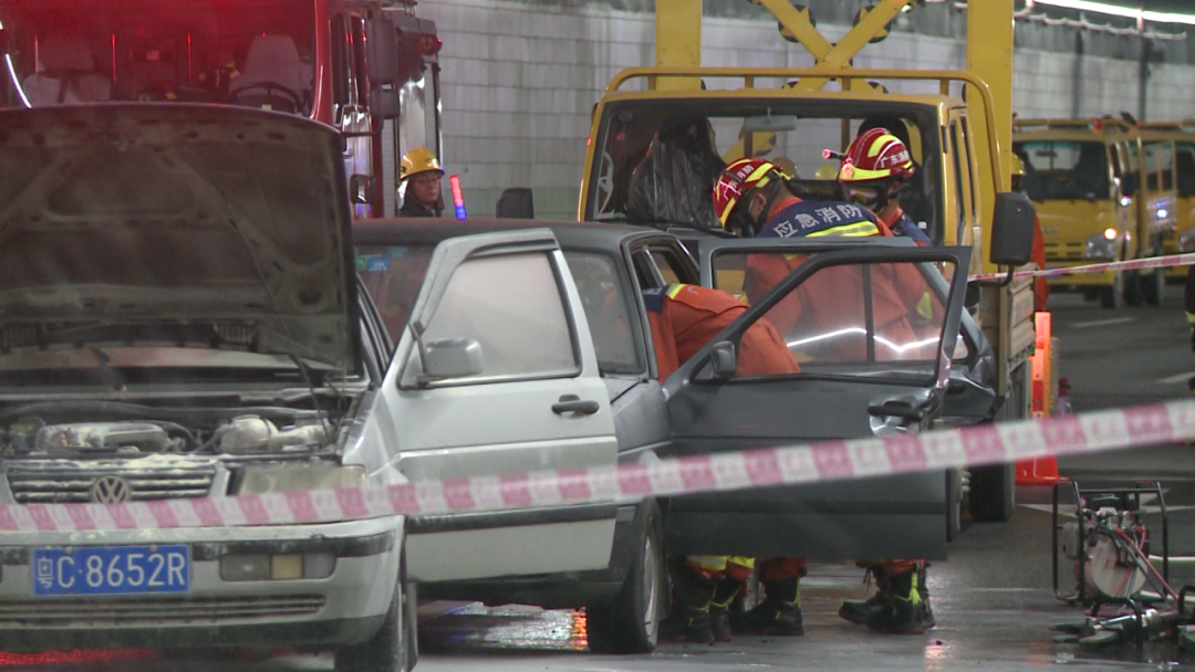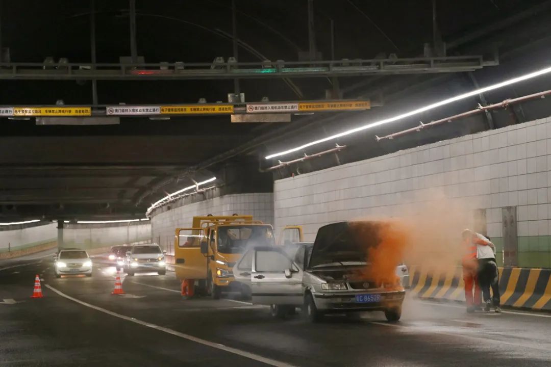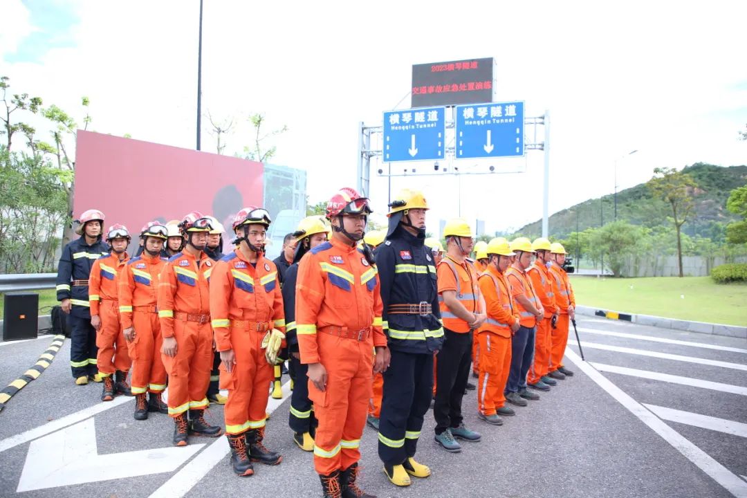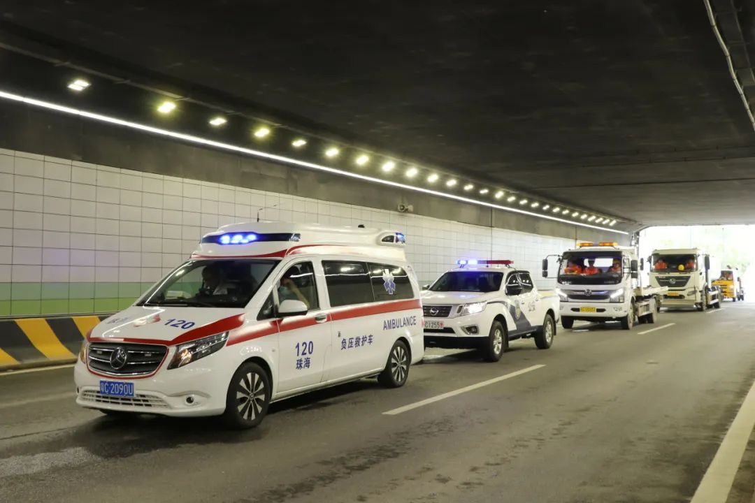 夏日酷暑高温,隧道通车情况复杂,如果发生车辆碰撞起火事故怎么办?车上人员如何救援?滞留车辆如何疏散?横琴隧道突发交通事故应急处置演练,以“实战”递交答卷。