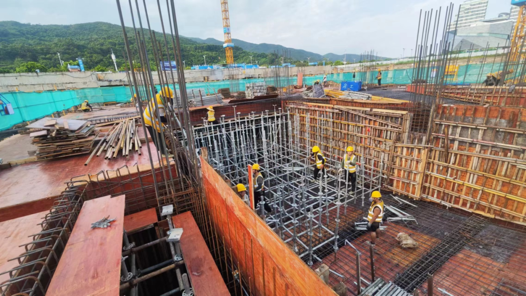 大横琴置业接到代建任务后,火速组织各参建单位进场,通过超前策划布局、提前协调部署及过程精准管控,如期完成了912根旋挖灌注桩的施工。目前,项目按照合同工期推进,土石方工程完成96%,地下室底板防水完成32%,底板结构完成20%,地下室负二层结构完成12%,地下室±0结构完成10%,预计2025年底建成投入使用。