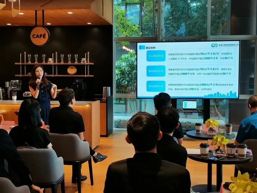 活动通过对大横琴发展公司园区生态及服务管家体系介绍、普惠金融贷款知识小课堂、横琴粤澳深度合作区普惠政策分享,助力新企业更快融入大横琴Super Star“超级星”园区,也通过园区企业代表业务分享及企业间交流互动,促进企业之间的沟通了解,为企业搭建资源链接平台,提升企业和人才服务团队之间的黏性。