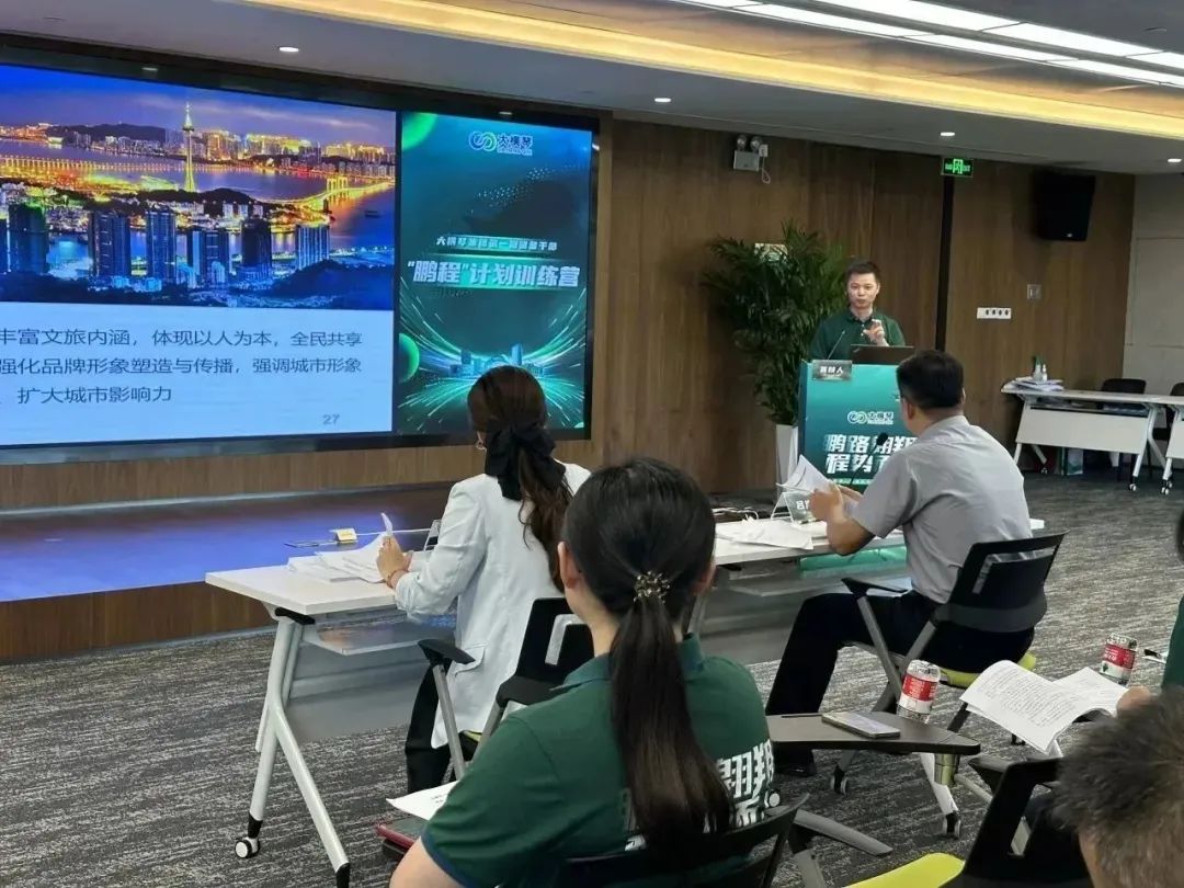 本期“‘鹏程’之星”获得者,来自泛旅游公司的汪娟萍作为学员代表发言。她从学习体验和个人获得角度出发,认为“鹏程”训练营对于学员构建系统化思维,提升思辨能力、业务实战能力、管理能力起到极大的帮助,是一次全方位、立体化、靶向式的培训,其中收获将终身受用,能让自己更加自信、更有力量地去面对未来,同时呼吁全体学员加强自我复盘和学习迭代,以长远的目光推动业务发展,以饱满的热情投入工作,为大横琴的事业开拓、高质量发展贡献力量。