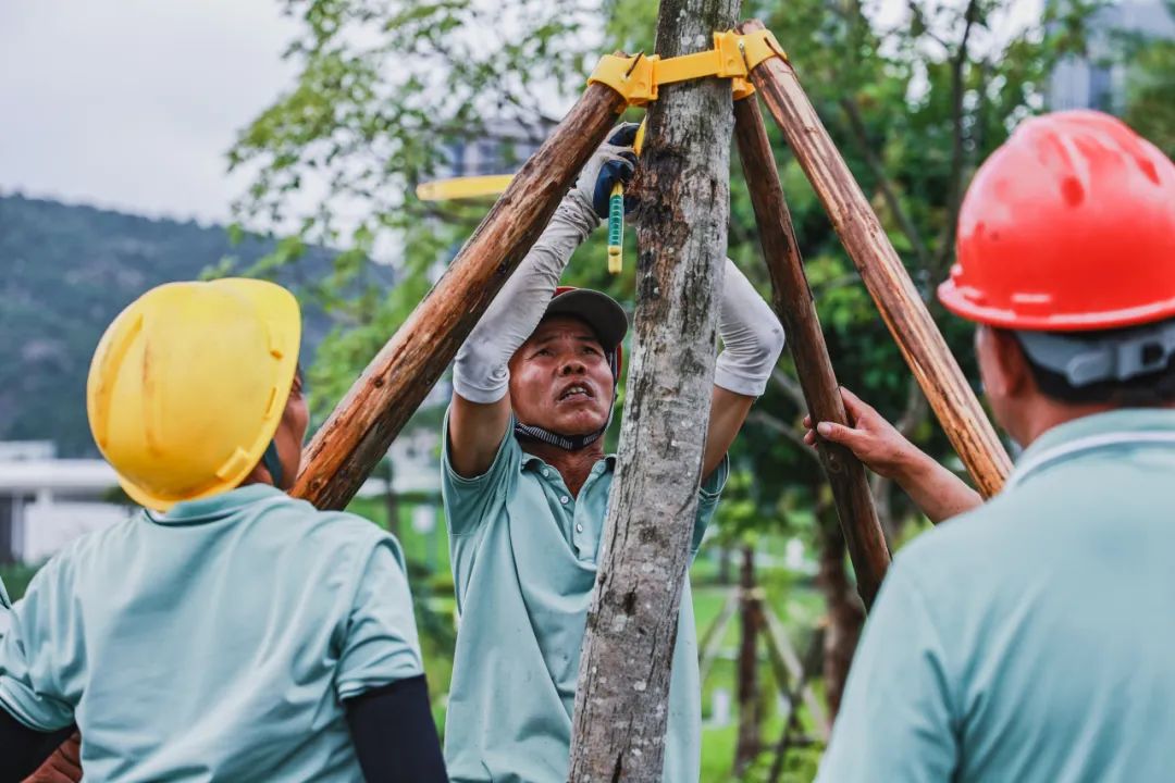 首先,对建筑物进行全面检查,确保建筑物结构安全。其次,集中力量对各项目受损树木进行修复和清理,利用工具和机械设备积极清理影响道路、桥梁正常通行的倾倒树木和杂物,以尽快恢复正常的生产生活秩序。针对重点区域现场迅速制定方案。