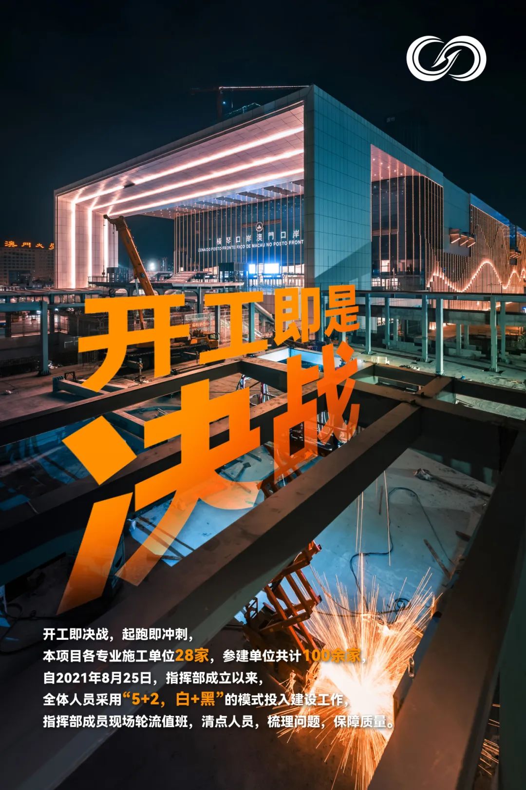 横琴口岸二期通关项目F区主体结构完成浇筑,整体封顶。