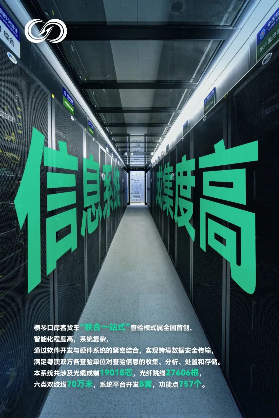 横琴口岸客货车“联合一站式”查验模式属全国首创,智能化程度高、系统复杂,信息化工程将软件系统、硬件设备与通信系统高度集成,指挥部通过软件开发与硬件系统的紧密结合,实现跨境数据高效传输,以满足粤澳双方各查验单位对查验信息的收集、分析、处置和存储。