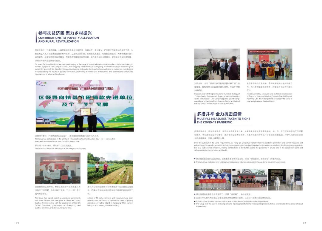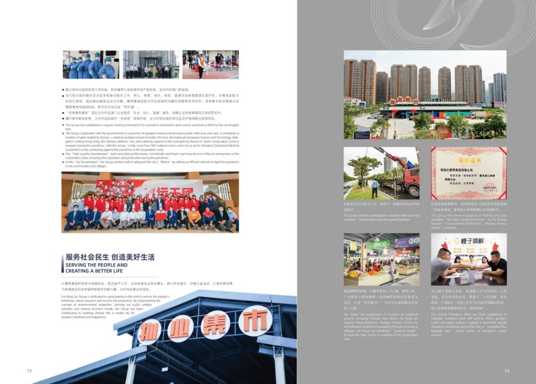 积极参与云南怒江、西藏林芝、贵州遵义、广东阳江茂名等地的帮扶工作,助力推进乡村全面振兴;在疫情防控的特殊时期,举全集团之力支持珠海和合作区打好疫情防控阻击战;主动投身社会民生事业,开展公益活动,为珠海建设民生幸福样板城市贡献力量……
