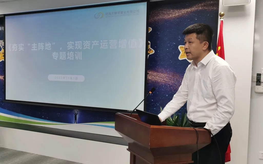 培训会由大横琴置业总经理助理刘冰一主持,他提出存量资产盘活作为国有资产保值增值的重要手段,特别是对于存量资产多、建设任务重、负债率高的国有企业,也是防范债务风险、筹集建设资金和优化资产结构的重要手段,希望通过本次培训,帮助大家拓宽国有企业转型升级和未来发展的视野和思路,进一步促进公司高质量发展。