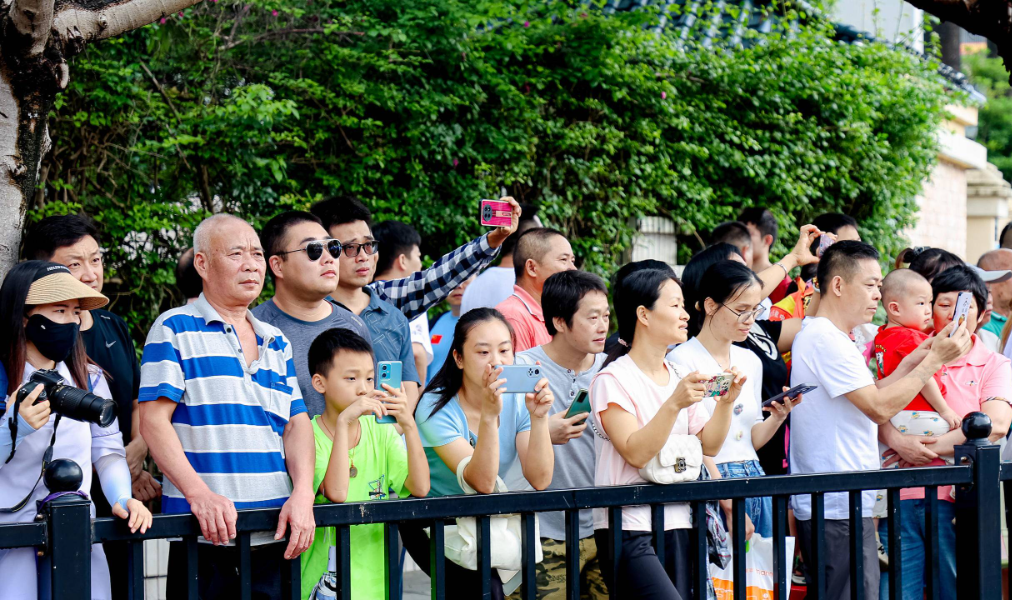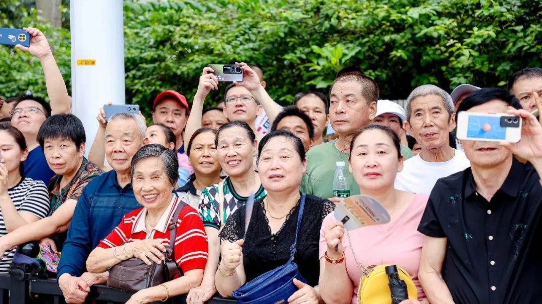 “我每年都和爸爸妈妈一起来看龙舟赛,现场的氛围太震撼了!作为斗门人,我感到非常开心和自豪。”斗门小观众彦宏开心地说。与此同时,不少游客专门从外地赶来观赏这场“水上竞技盛宴”。在众多观众中,来自南屏的欧先生是龙舟赛的“铁杆粉丝”,尽管的腿部受伤,他也要双手拄着拐杖,全程站着关注观赛。