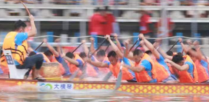热血沸腾、紧张刺激、扣人心弦,在冲刺阶段,鼓点越发频密,选手们划桨的频率迅速上升,龙舟的速度越来越快,观赛区的加油声也越来越大,所有人都全身心地投入到这场比赛中。