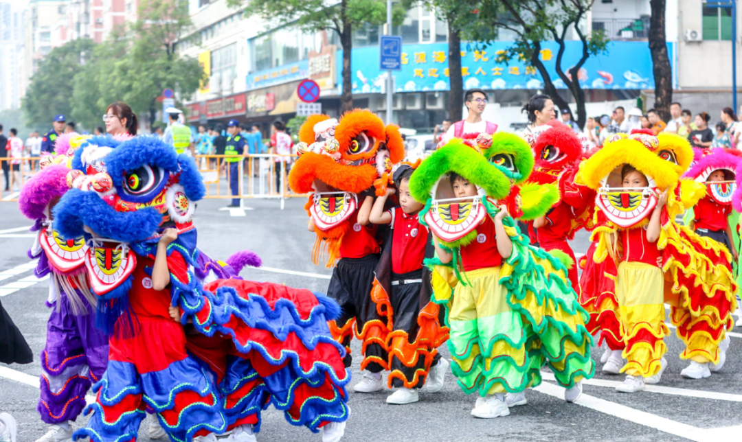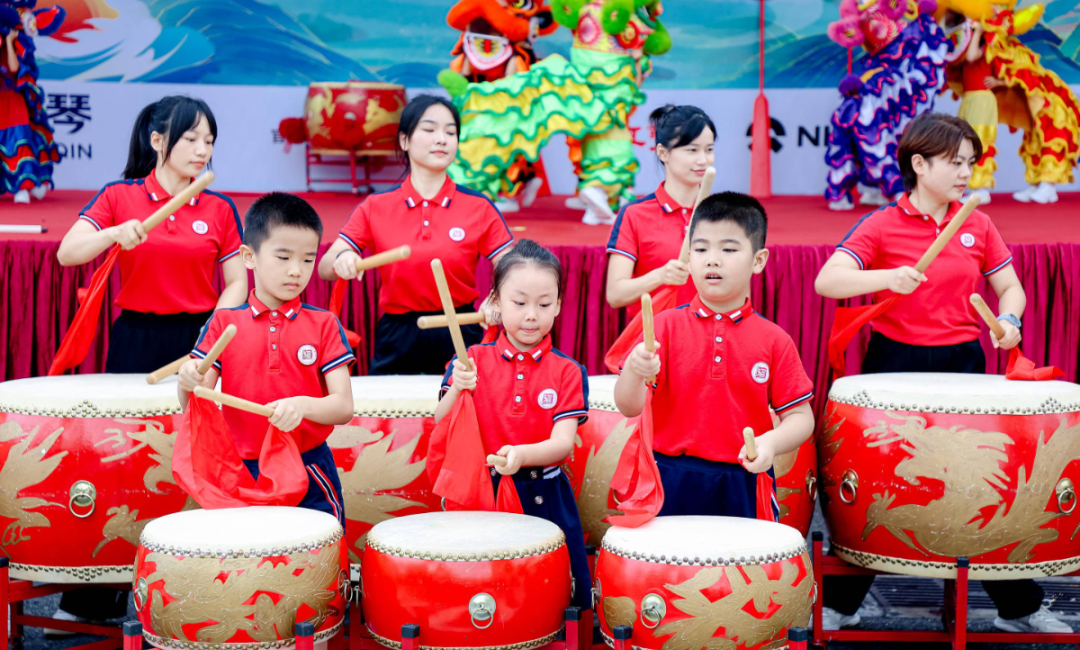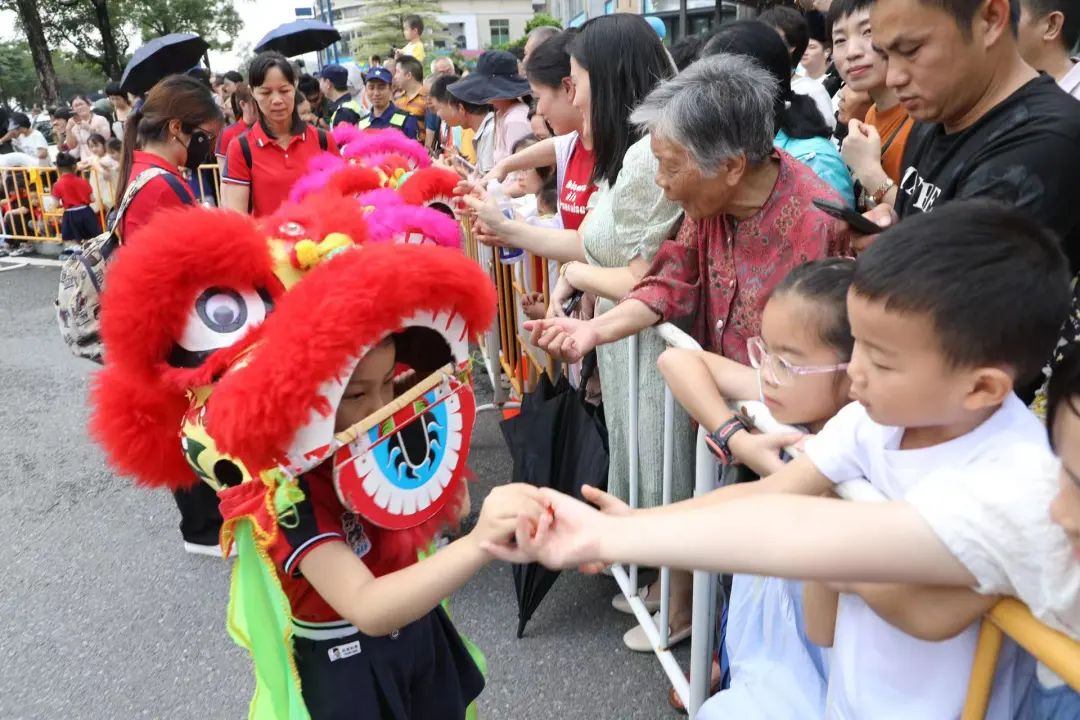 《群狮共舞》《轮滑龙》《赛龙夺锦》《幼儿萌狮》等斗门传统民俗文化,以及管乐团合奏《迎宾曲》《金龙夺标》、舞蹈《龙腾九洲》、川剧变脸等富有浓厚非遗特色的文体节目在岸上的舞台穿插上演。