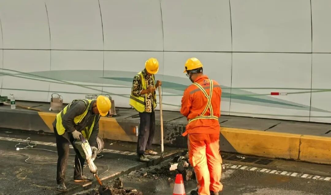 针对长隆隧道存在的路面渗水问题,技术团队经综合分析,采用针对性优化的埋管排水工艺,对渗漏点进行精准修复,累计完成38处病害治理,有效解决安全隐患。同时,组织力量着手处理横琴隧道的路面坑塘问题,通过平整路面、优化标线,显著提升车辆通行的平稳性与安全性,为赛事期间的交通疏导提供有力支撑。