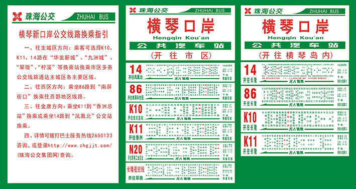 附图一:横琴口岸公交线路换乘指引